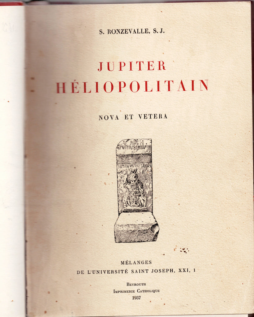 Jupiter Héliopolitain. Nova et Vetera. Mélanges de l'université Saint Joseph, XXI, I.