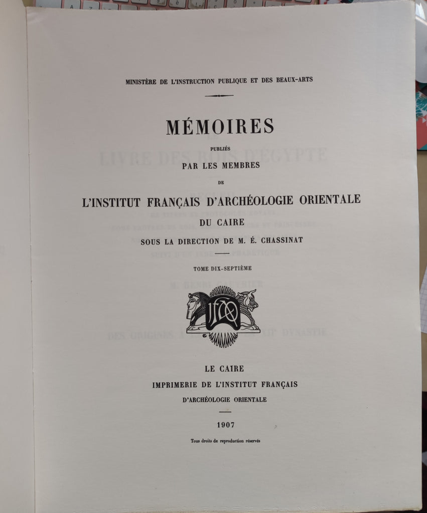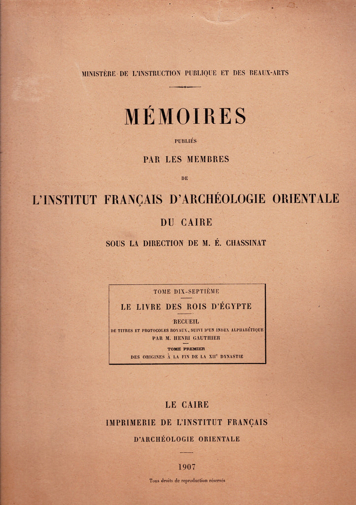 Tome second : De la XIIIe dynastie à la fin de la XVIII dynastie. 428 pages. Le Caire, 1912