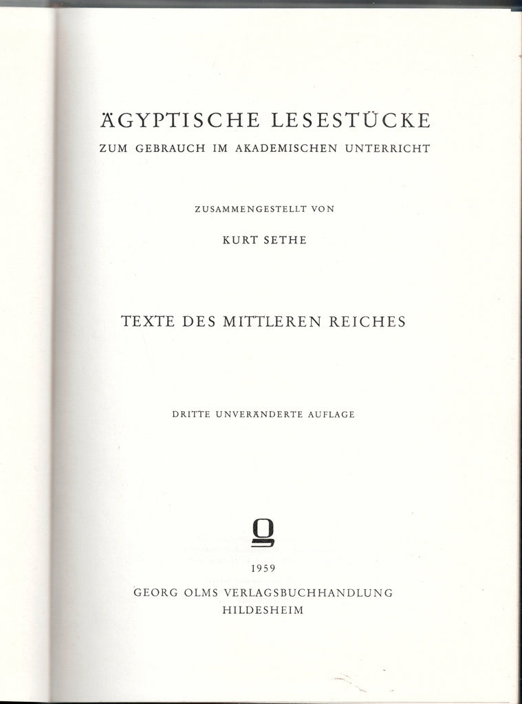 Agyptische Lesestucke. Zum Gebrauch im Akademischen Unterricht. Texte des Mittleren Reiches.