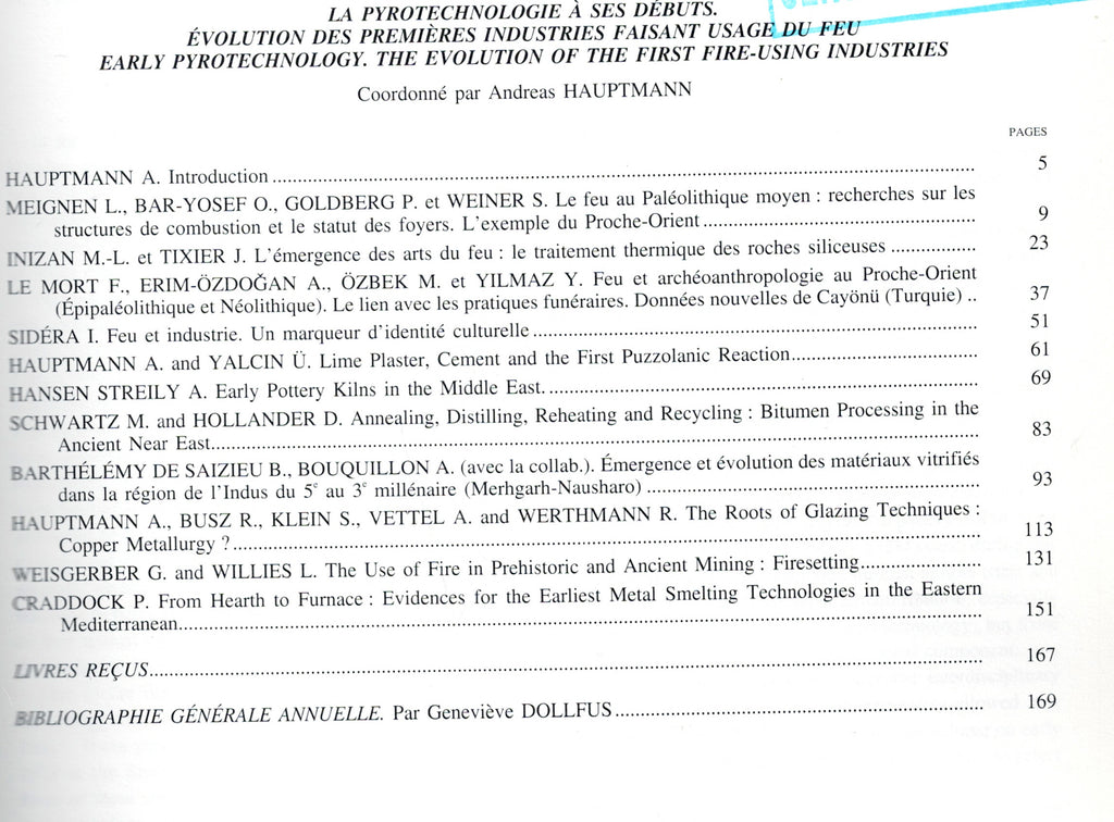 Paléorient. 26,2.2000. La pyrotechnologie à ses débuts. Evolution des premières industries faisant usage du feu.