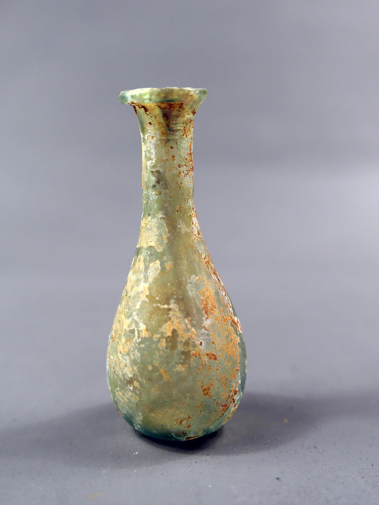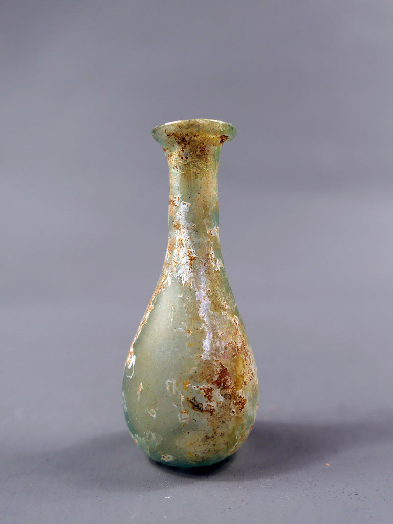 Petit lacrymatoire à panse piriforme et légères irisations.